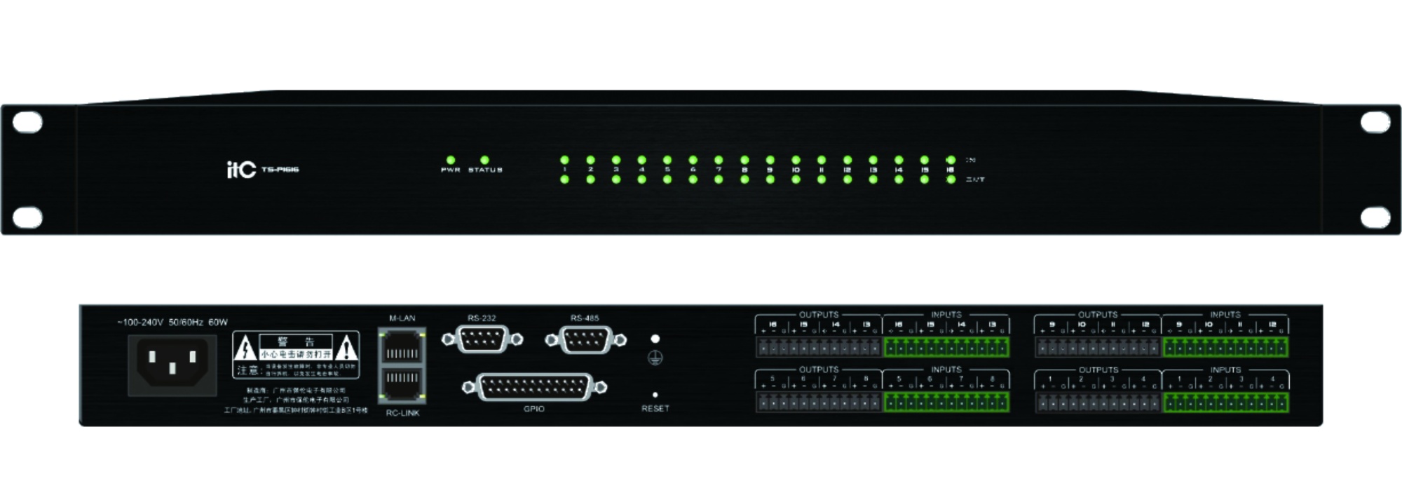 Матричный аудио процессор 16х16 ITC TS-P1616