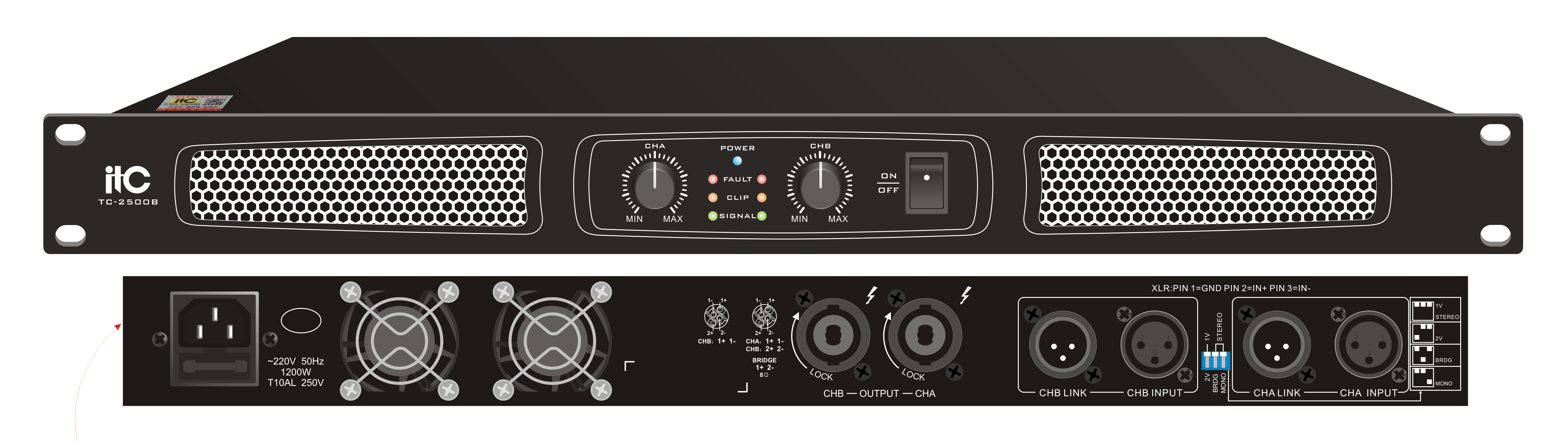 2-канальный усилитель, 2х500W / 8 Ом ITC-2500B